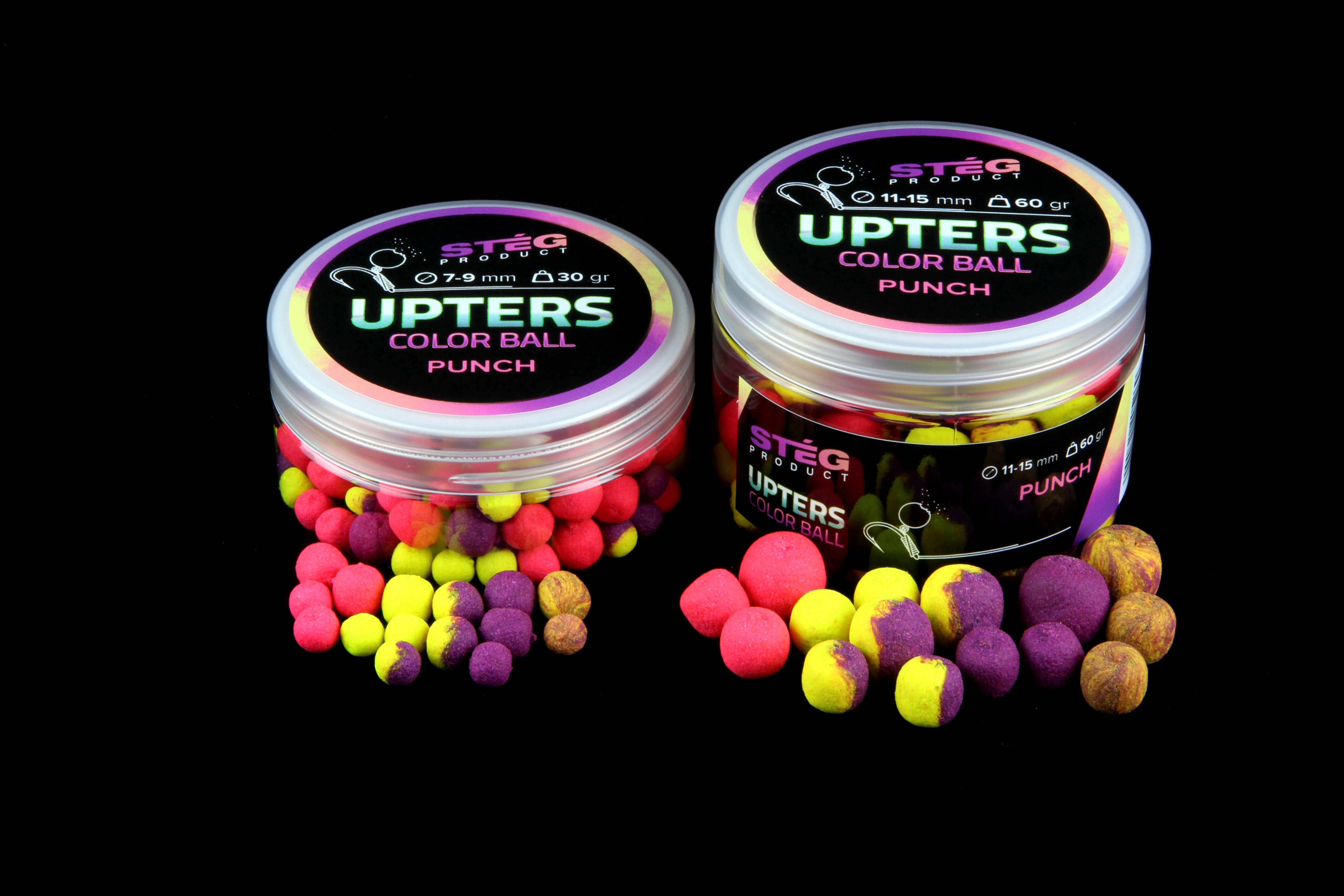 UpTers Color Ball - Színesen és még színesebben - ez a UpTers Color Ball! Az UpTers Color Ball egy rendkívül erős illattal, élénk színekkel rendelkező kibalanszírozott csali. Hogy mit is jelent ez? Az UpTers Color Ball a csalitüskét nagy részben megemeli, viszont a horog a fenéken, vagy a kosarunk, etetőanyagunk tetején marad. Ha bárki azt hiszi, hogy a pontyhorgászatban a színek nem számítanak, az nagyon téved.Számtalan esetben fordult elő tesztjeink alatt, hogy azonosan aromázott, de más színű csalival sokkal több kapást tudtunk elérni. Hogy mért van ez így, azt egyenlőre mi sem tudjuk pontosan, de hogy ez így van, azt sok ezer óra teszthorgászat bizonyítja az ország legkülönbözőbb vizein. Minden dobozban két méret, több egyéni szín, illetve azok kombinációja található.